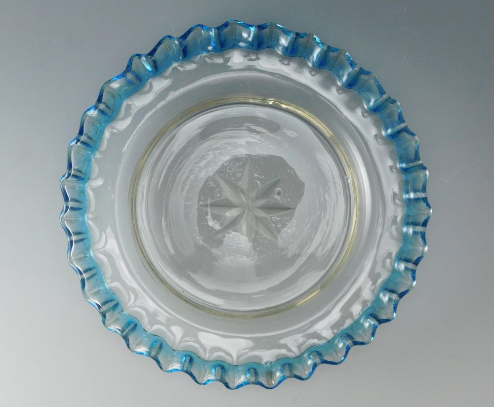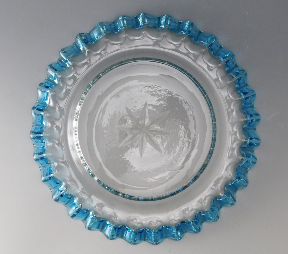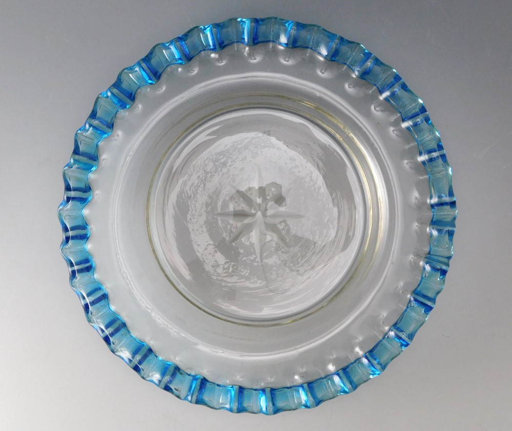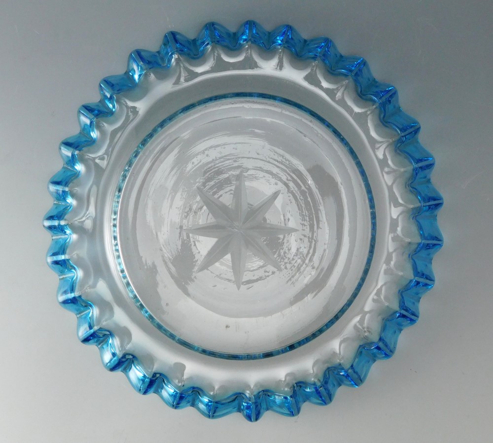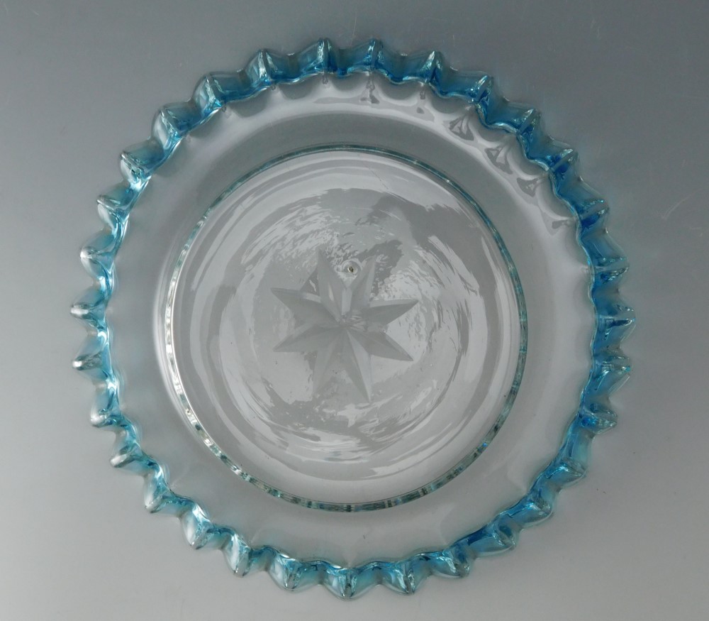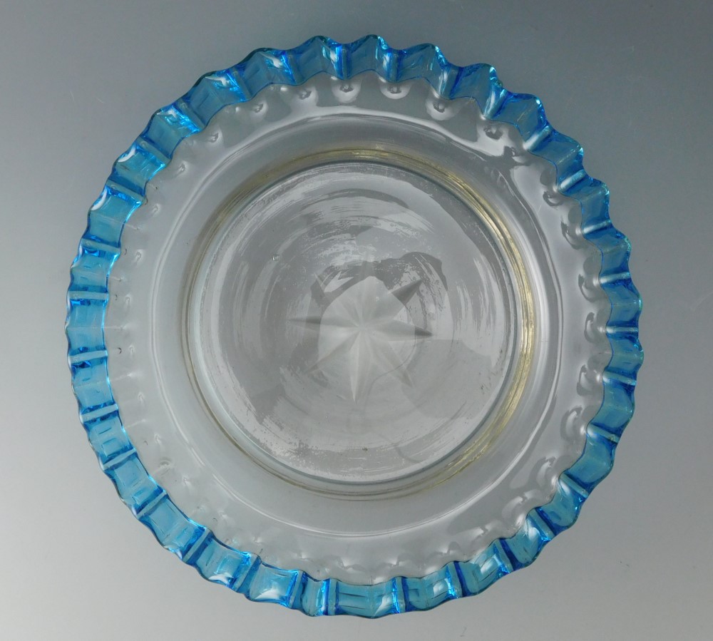 明治・大正期 青花縁ガラス皿 三枚
