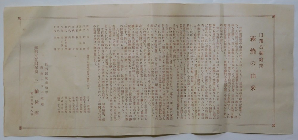 400年の長い歴史を持ち、茶陶の名門でもある萩焼。その頂点に位置した人間国宝・三輪休和氏が八十六年の生涯を閉じたのは、1981年の10月24日でした。