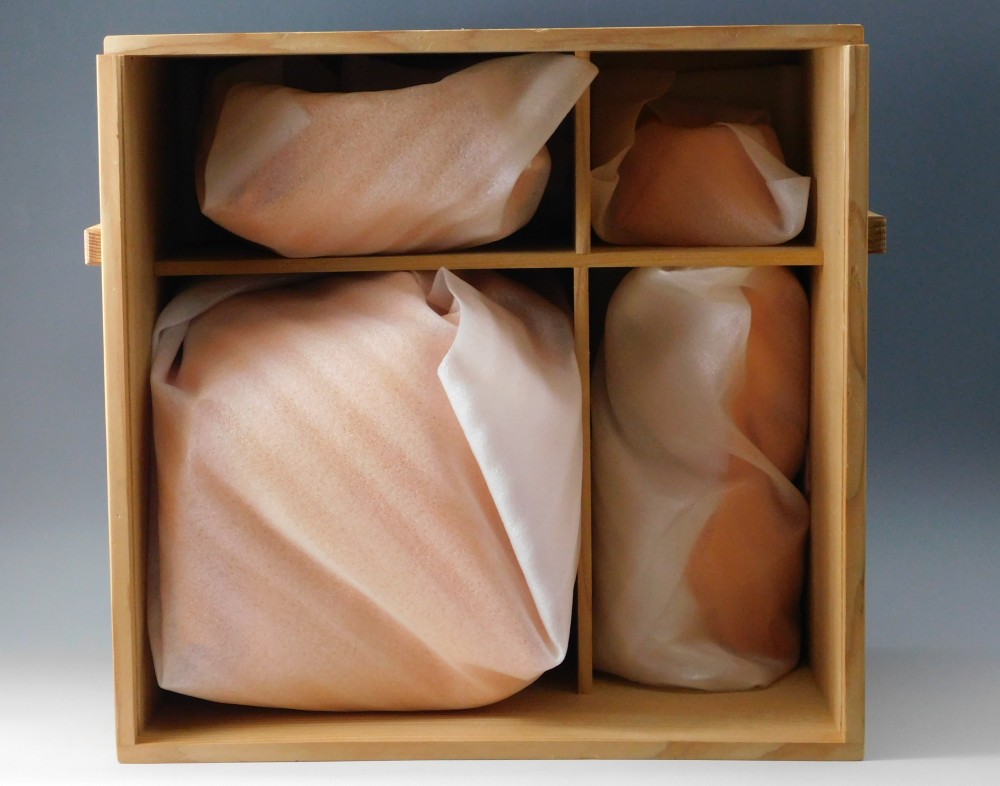 共箱が付属し、さらに当店で薄葉紙と黄布、緩衝材を用意させていただきました。