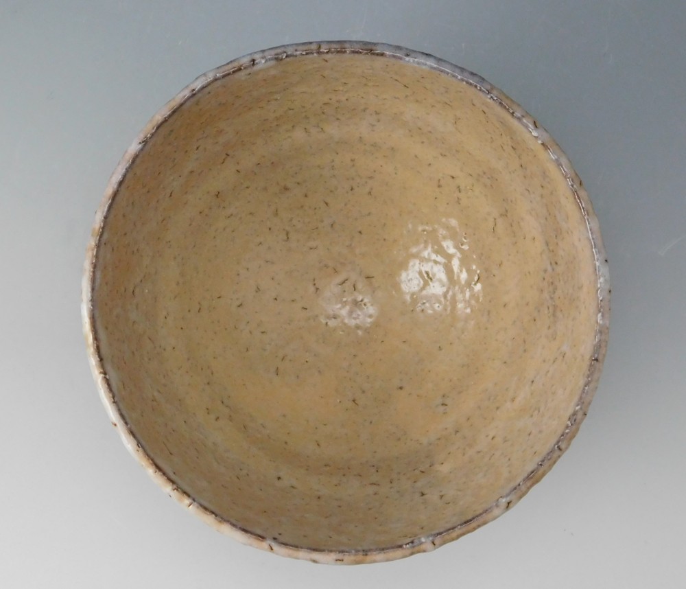 広く大きな口造り、高台も高く、その大振りで重厚な造りは、高麗の井戸茶碗を思わせる出来となっています。