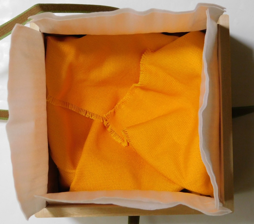状態は非常に良く、キズ、汚れ全くなく、まるで未使用のようです。共箱と三枚のしおり、共布、箱かぶせ紙がそのまま残っており、さらに当店で薄葉紙と緩衝材を用意いたしました。