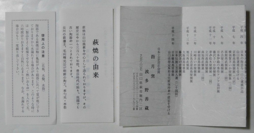 付属品 | 共箱・共布・栞(三枚) 薄葉紙・箱かぶせ紙 |